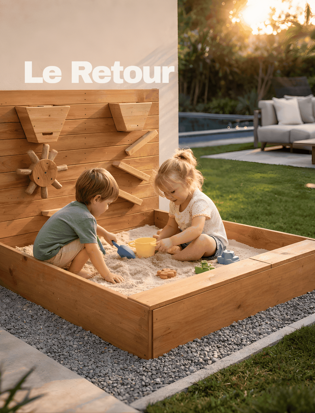 Jeux d'Extérieur enfant, Bacs à sables, Balançoires et autres jeux Montessori en bois parfait toute l'année