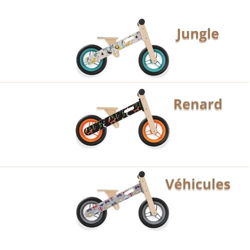 Draisienne Evolutive Bois 3-6 ans - Motif Jungle | Renard | Véhicules - STYL