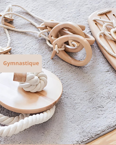 - Trapèze avec cordes et balançoires + tapis : Un kit complet pour explorer la motricité jusqu'à 5 ans.