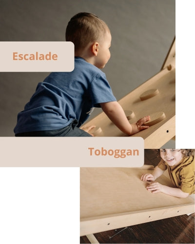 Les jouets Montessori sont conçus pour développer l'autonomie, la créativité et la motricité par le jeu libre. L'aire de jeu d’intérieur encourage votre enfant à explorer, à grimper et à apprendre à son propre rythme. En offrant ce type de jeu, vous favorisez son autonomie tout en lui offrant un cadre sécurisé et stimulant sans écran.
