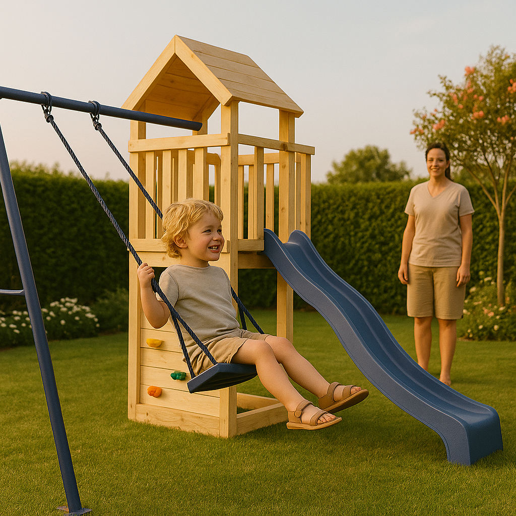 Absolument. Chaque élément (balançoire, toboggan, mur d’escalade) respecte les normes européennes de sécurité pour les jouets destinés aux enfants. L’aire de jeux est stable, solide, et conçue pour des années d’aventure en extérieur.
