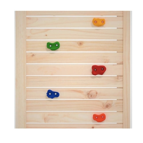 - Mur d’escalade avec prises colorées pour une montée ludique et dynamique