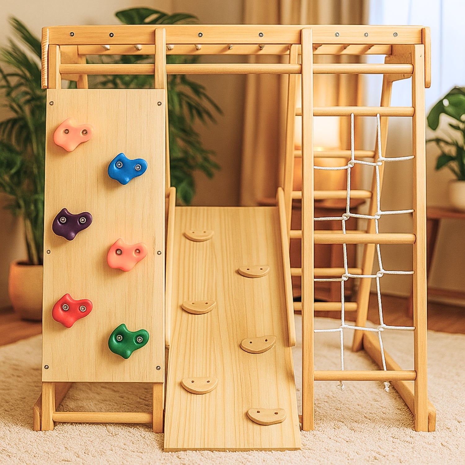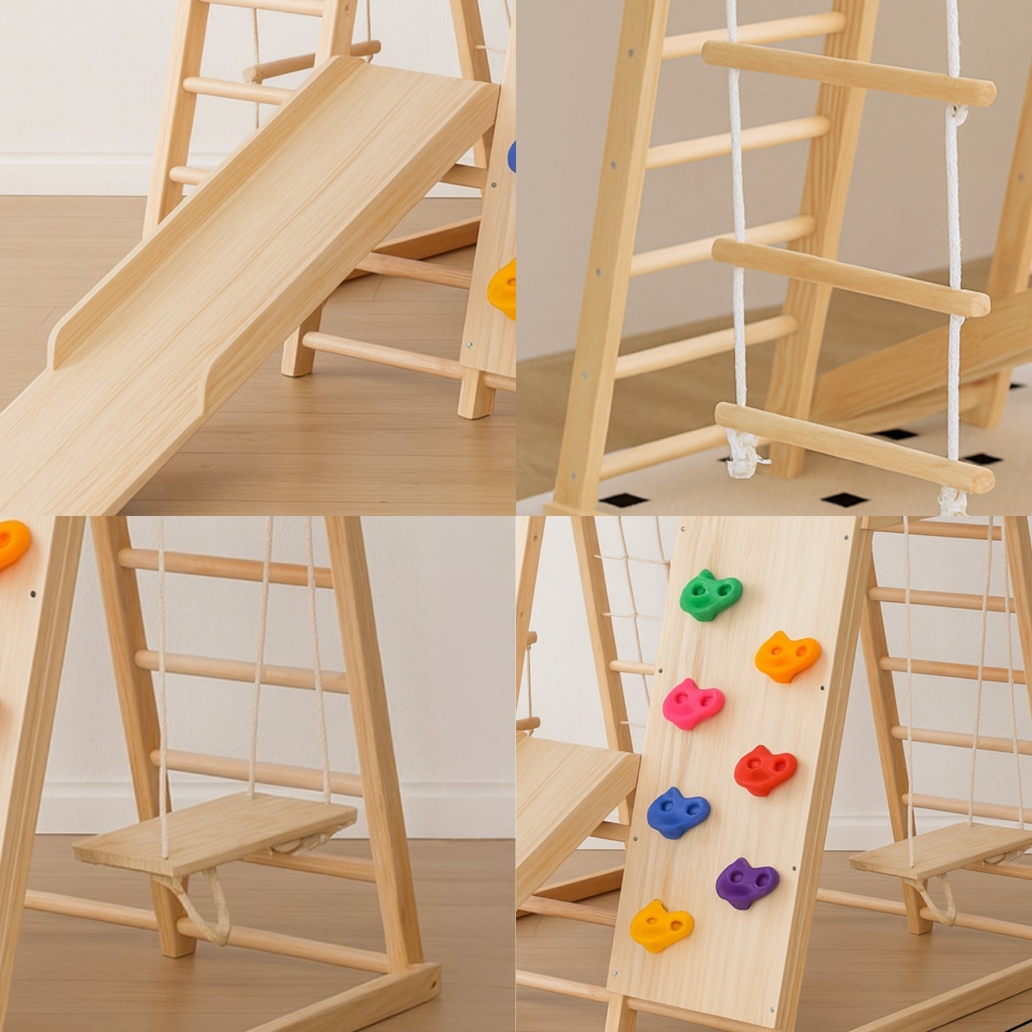 Aire de jeux Intérieur Montessori | avec Prises d'Escalade & Toboggan | enfant 1 an à 5 ans