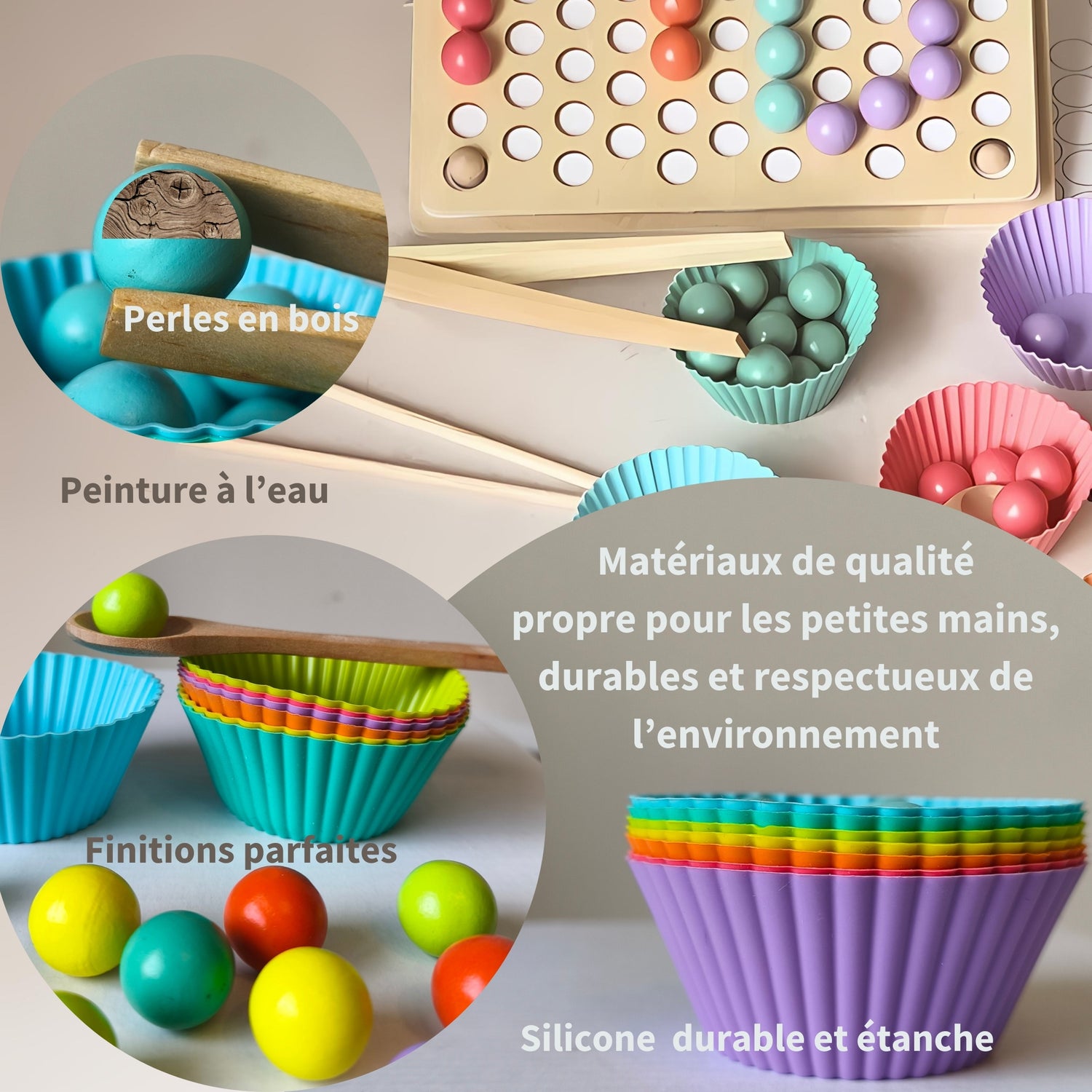+ Matériaux : Bois, Silicone alimentaire sans BPA, durabilité et sécurité optimales