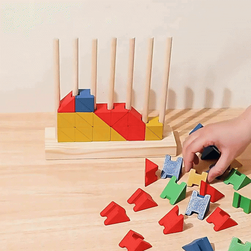 🔹 Les blocs triangulaires colorés, stimulent la motricité, la dextérité et l’apprentissage de la logique géométrique.