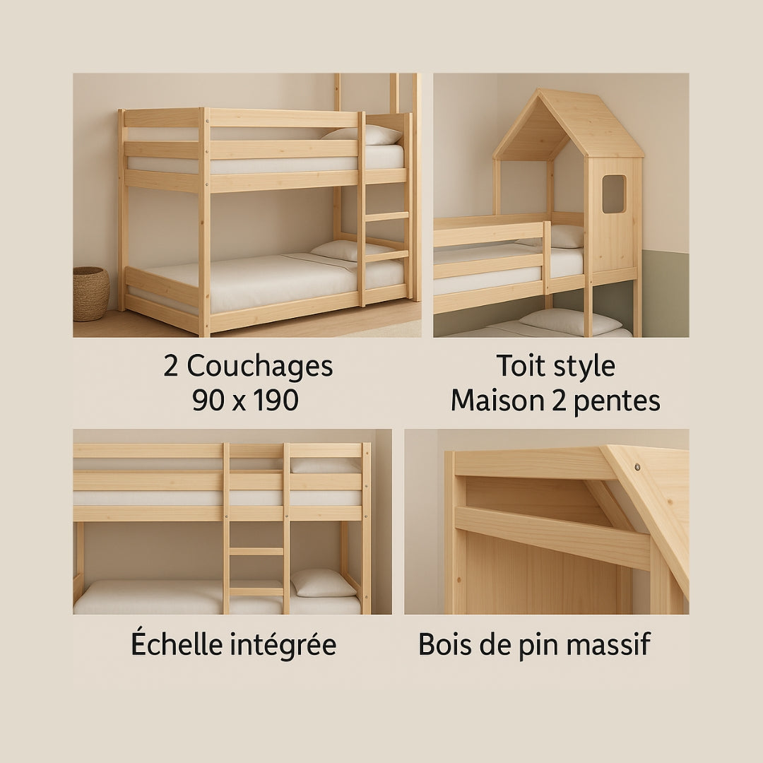 2. Un toit en forme de maison 2 pentes - Un véritable refuge pour vos enfants. Design ludique et rassurant pour un rituel du coucher apaisant.