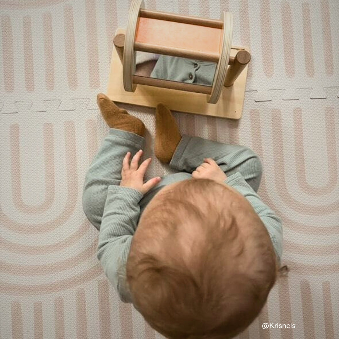 Tambour rotatif - Eveil sensoriel pour bébé - avec Miroir intégré -Jeux Montessori 6 mois jusqu'à 2 ans